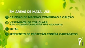 Para isso, é importante evitar locais de mata e com alta incidência de carrapatos e, quando isso ocorrer, roupas e calçados adequados são as formas de proteção.