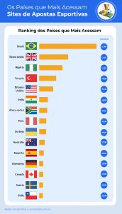 O país do futebol, também o líder em apostas esportivas, com mais de 3,19 bilhões de acessos