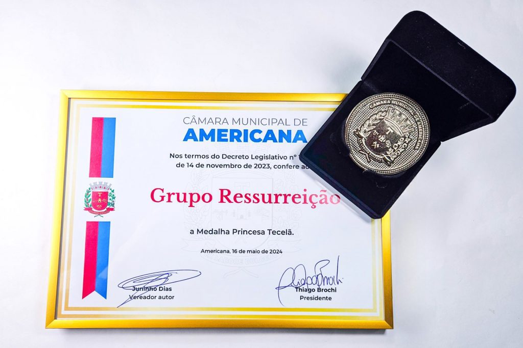 A Câmara Municipal de Americana realiza na quinta-feira (16) sessão solene para a entrega de medalhas de mérito Princesa Tecelã a Giuliano Paulino Coan, Rafael Camilo Paes Dias, Renan Willian da Silva e ao Grupo Ressurreição. As homenagens foram motivadas por decretos legislativos de autoria dos vereadores Juninho Dias (PSD) e Silvio Dourado (PL).