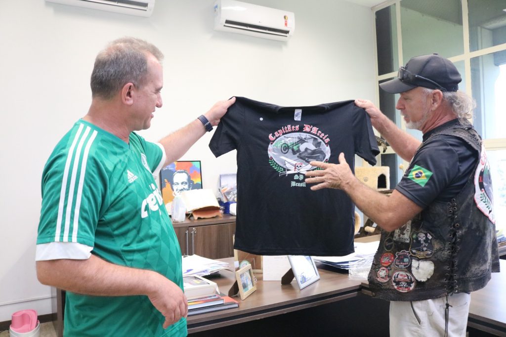 O prefeito Leitinho agradeceu o presente e o convite. “No melhor espírito do motociclismo, ele me trouxe esta linda camiseta e o convite para prestigiar a festa comemorativa do aniversário de dois clubes – o Capitães D’Areia e o Veteran Motorcycle Club do Brasil – ao qual estendo aos amantes de duas rodas de Nova Odessa e de toda a região”, afirmou.