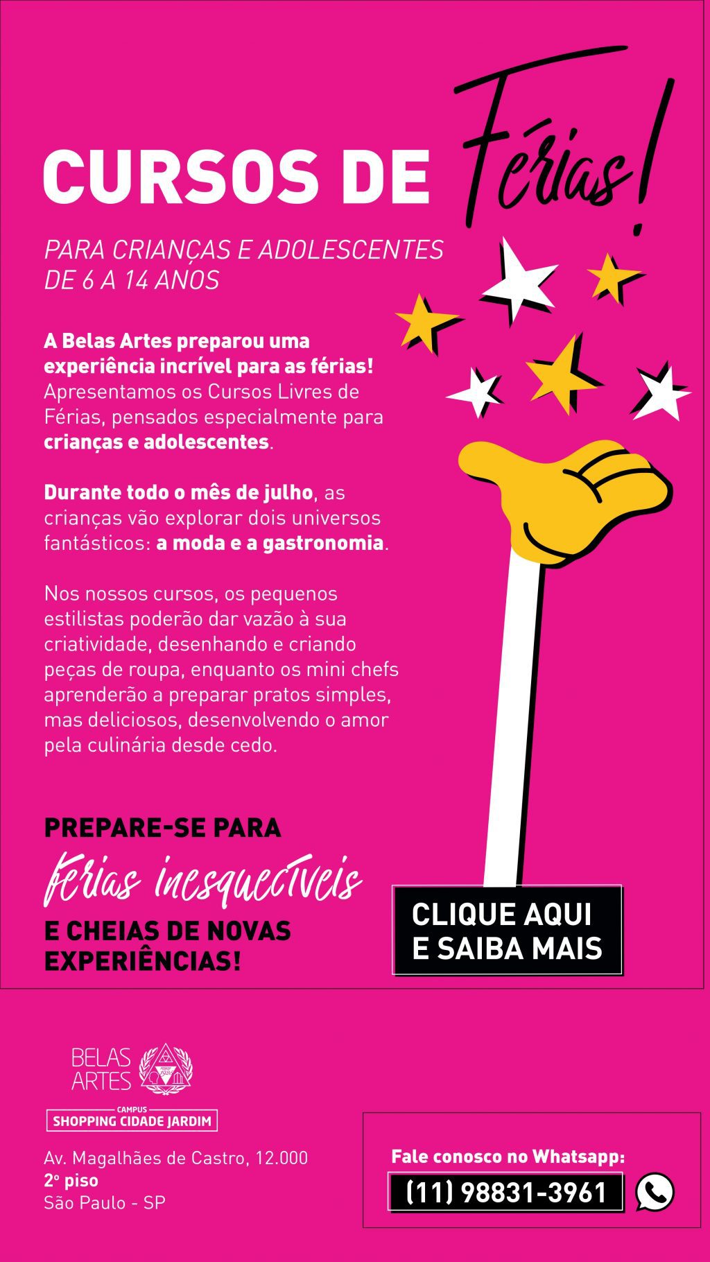 Para informações adicionais e inscrições, visite o site oficial: https://www.belasartes.br/cursos-livres-de-ferias/
