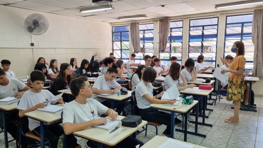 Alunos do 9º ano das Escolas Municipais de Educação Fundamental (EMEFs) Paulo Freire, Florestan Fernandes, Jonas Corrêa Arruda Filho, do CAIC Prof. Sylvino Chinelatto e do Centro Integrado de Educação Pública (CIEP) Prof. Milton Santos participam do Projeto EPTV na Escola – um concurso de redação entre todos os estudantes da série, das redes municipal, estadual, particular, SESI, e EJA das cidades da área de cobertura geográfica da emissora de TV.