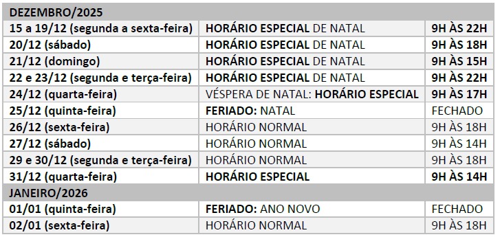 A associação reforça que o calendário de funcionamento especial foi definido a partir de levantamento realizado junto aos comerciantes associados. A orientação serve como recomendação, podendo cada estabelecimento ajustar seus horários conforme a própria realidade, sempre respeitando a legislação vigente.