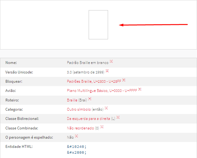 - U+2800 PADRÃO BRAILLE EM BRANCO