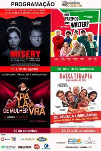 Uberlândia MG – No ano passado, os produtores da programação Uberlândia na Rota da Cultura realizaram 14 grandes eventos na cidade, trafegando por várias linguagens artísticas, como o teatro, a dança e a música, incluindo aí a despedida da inesquecível Gal Costa e apresentações de duas das maiores companhias de dança do país, Grupo Corpo e Cia Deborah Colker. Neste ano, por estarem envolvidos em um outro projeto que acabou se frustrando, no primeiro semestre houve apenas um espetáculo infantil, o Veludinho. Mas, a partir do próximo mês, apresentam espetáculos de grande sucesso no circuito cultural brasileiro, dois deles retornando à cidade, como reconhecimento do profissionalismo da produção e da receptividade calorosa do público tida anteriormente.