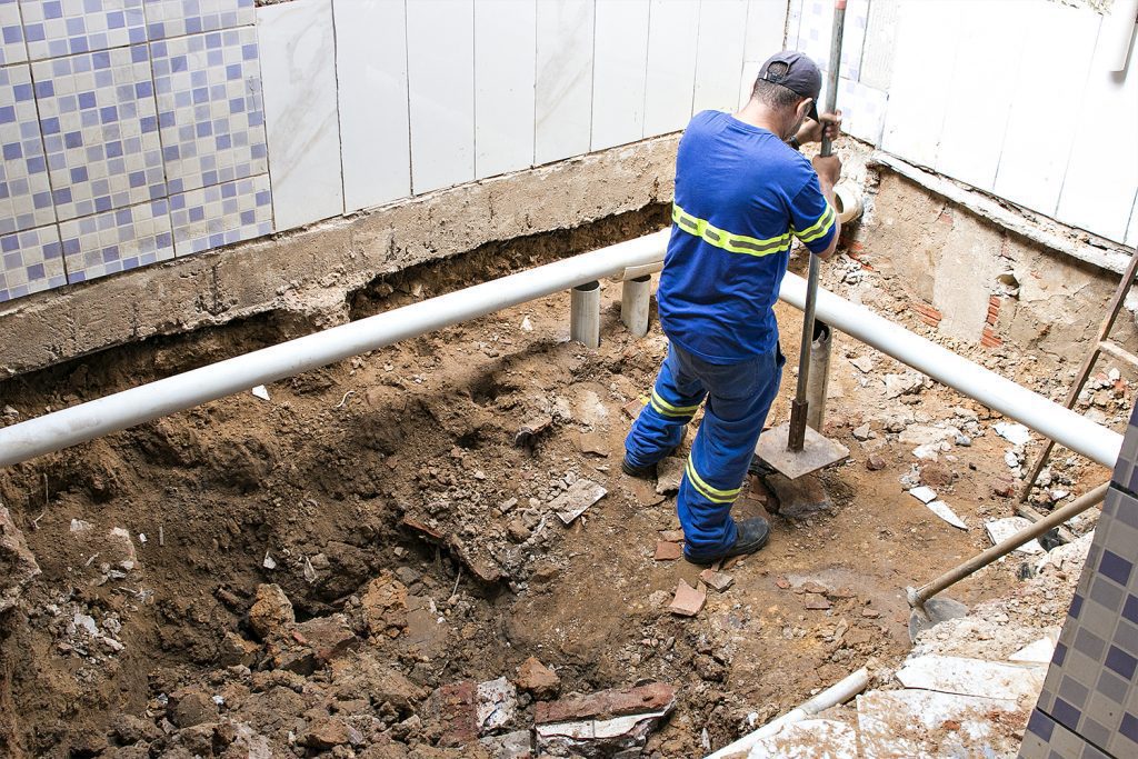Cerca de 15 metros da rede antiga de manilha foi substituída por uma nova com tubos de PVC, eliminando dessa forma o vazamento ocasionado pela quebra de parte da manilha.