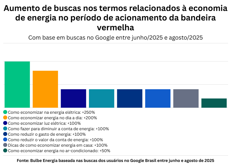 Conforme levantamento recente, realizado pela Bulbe Energia, fornecedora de energia solar por assinatura, entre o mês de agosto de 2024 e agosto de 2025, ocorreu um aumento expressivo nas buscas por termos relacionados à redução do consumo de energia elétrica.