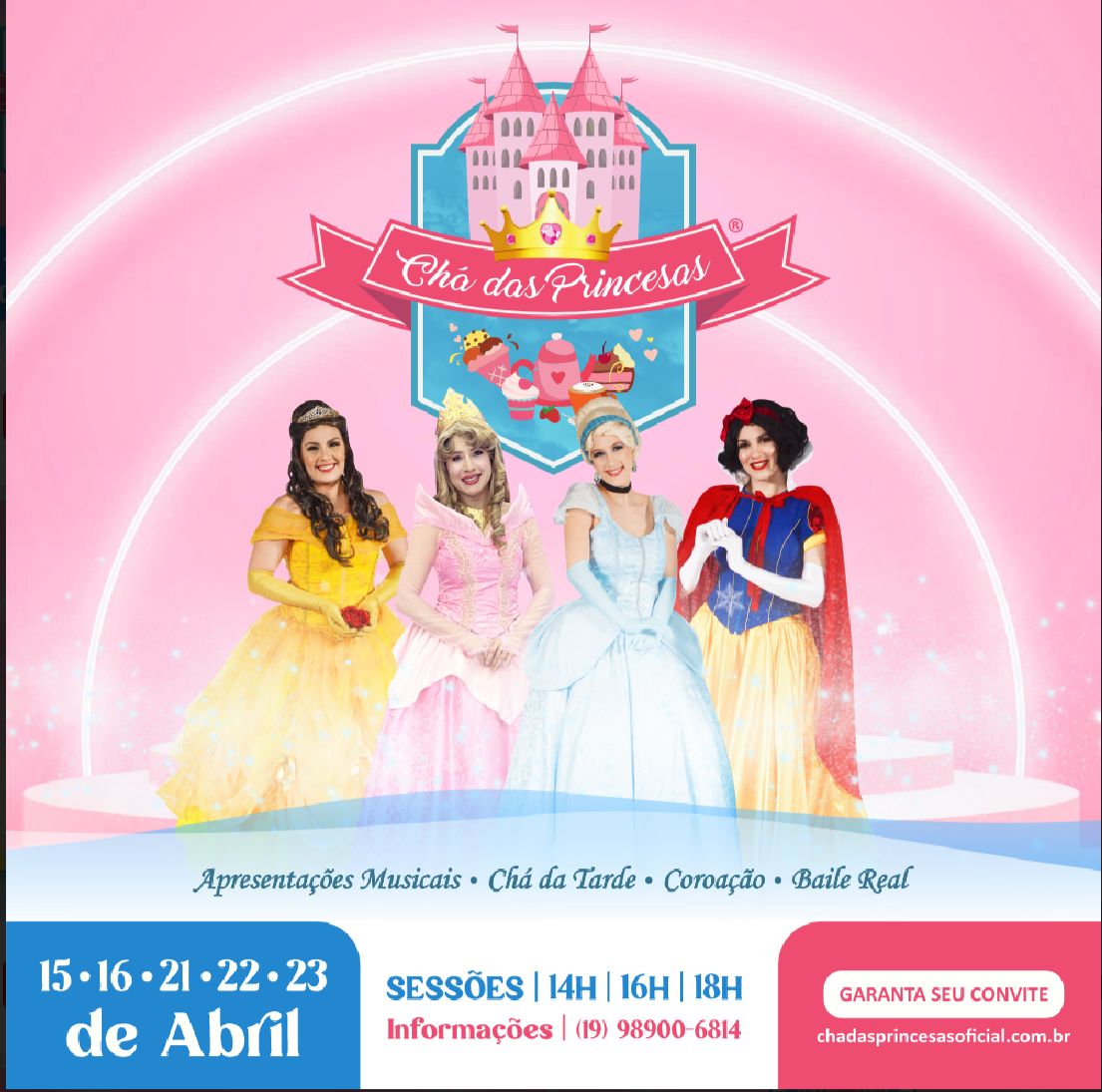 Destinado às crianças a partir de 4 anos de idade, o encontro com as princesas será em um espaço temático, especialmente decorado, onde os convidados irão desfrutar de um delicioso chá da tarde e viver uma experiência totalmente imersiva no mundo dos contos de fadas.