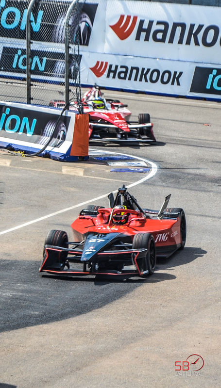 À volta 19, o cenário mostrava Dennis na liderança, seguido por Wehrlein e Nick Cassidy, da Citroën, que havia executado um uso perfeito do modo de ataque — ultrapassando seis carros na reta principal em uma manobra impressionante.