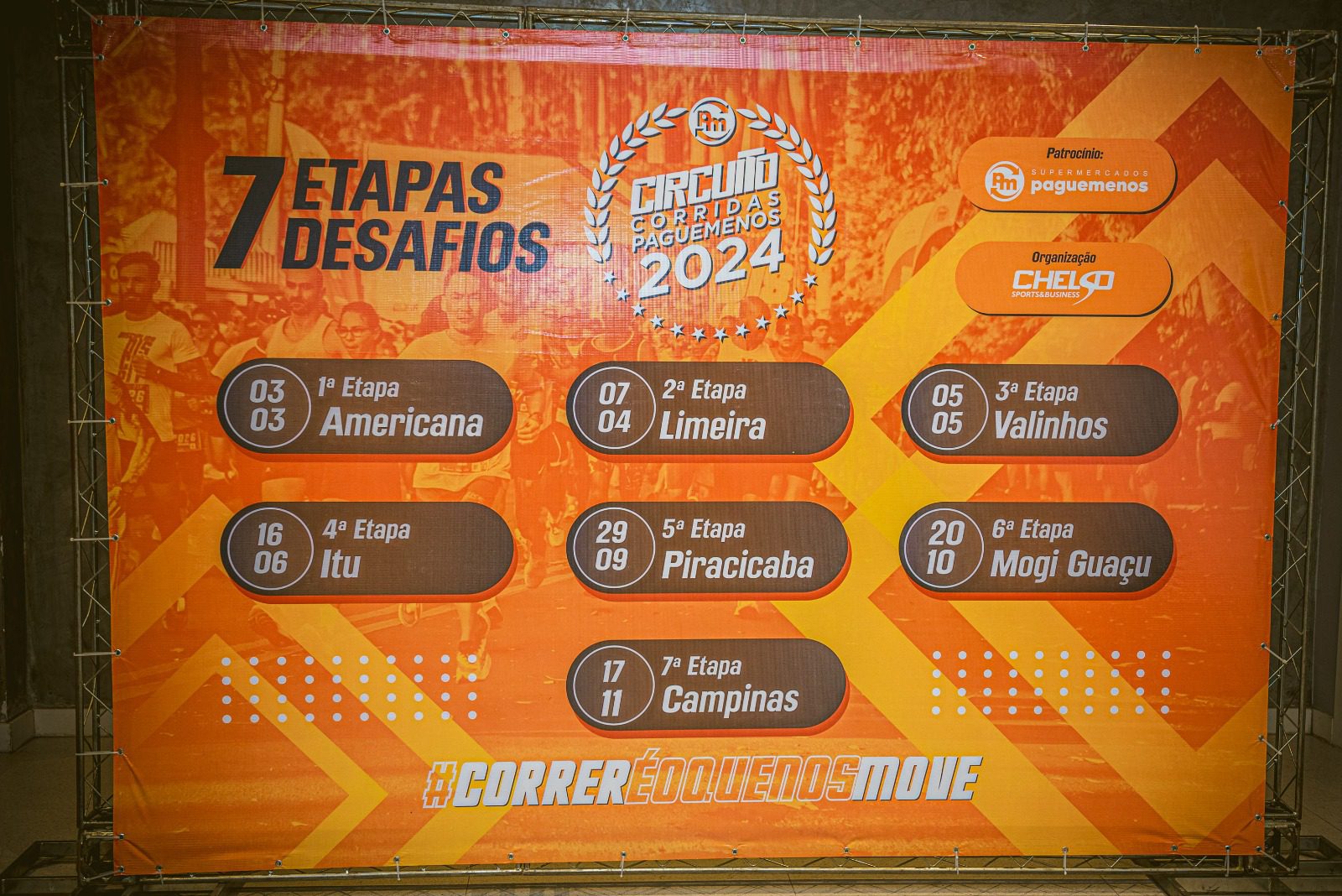 As etapas passarão também pelas cidades de Limeira (7/4), novidade no Circuito, Valinhos (5/5), Itu (16/6), Piracicaba (29/9), Mogi Guaçu (20/10) e Campinas (17/11). As inscrições já estão abertas no site https://www.corridapaguemenos.com.br/, para todas as etapas. Quem quiser, poderá adquirir o combo com todas as corridas ou realizar inscrição para cada uma.