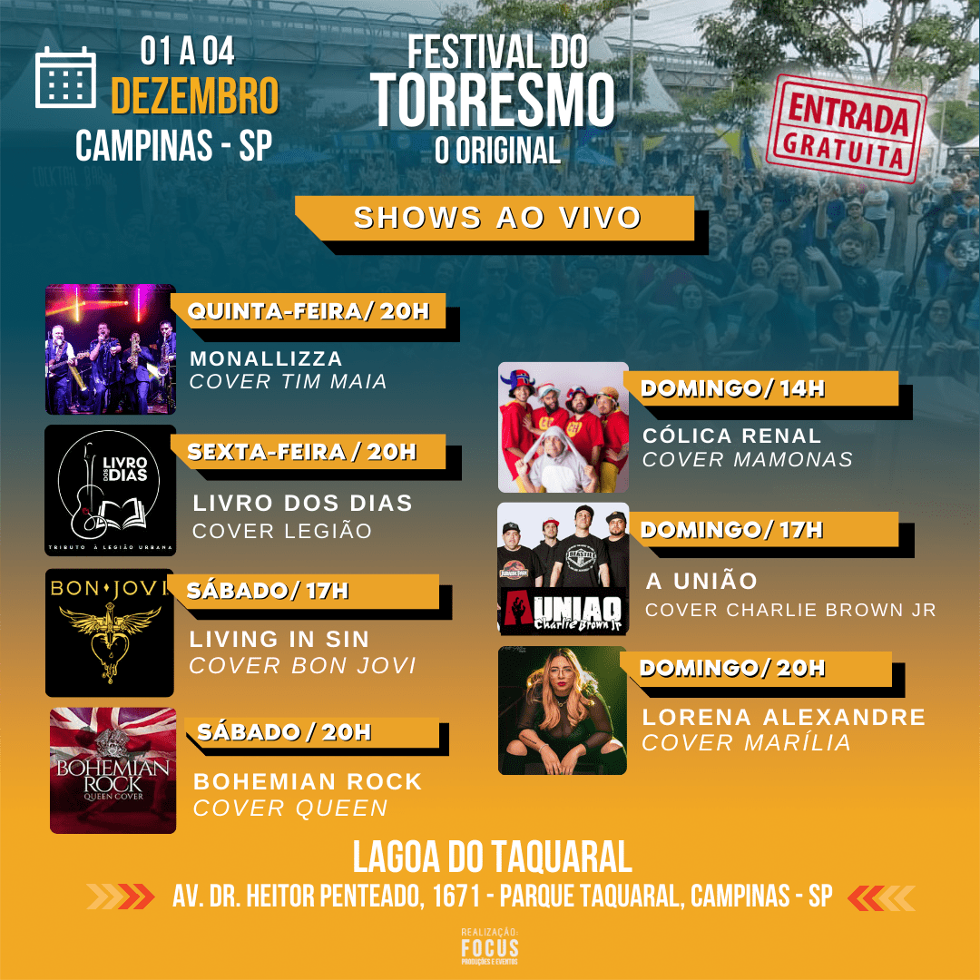 Consagrado no interior de São Paulo, Minas Gerais e Rio de Janeiro, o Festival do Torresmo é pioneiro e o maior do Brasil com mais de 100 edições realizadas e 4 milhões de visitantes. O evento gastronômico promete trazer a Campinas o melhor da gastronomia brasileira.