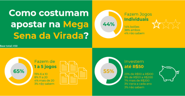 O estudo também observou que a loteria faz parte do cotidiano dos entrevistados. Cerca de 90% possuem alguma experiência prévia de aposta na Mega Sena, sendo que 22% fazem apostas semanalmente, enquanto 17% escolhem participar anualmente.
