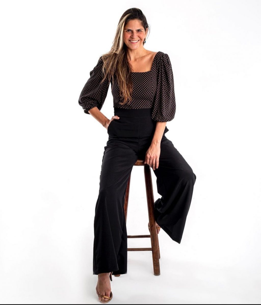 “Conheço mais de 40 países e minhas inspirações saem de todas as minhas experiências pelo mundo. Lugares, pessoas, arte, música, tudo junto vira uma peça de roupa que transborda vida”, comenta. Carlos, seu marido e sócio, é designer e sempre trabalhou com moda. Ele já fabricou para as maiores marcas brasileiras, como: Animal, Farm, Maria Filó, entre outras.