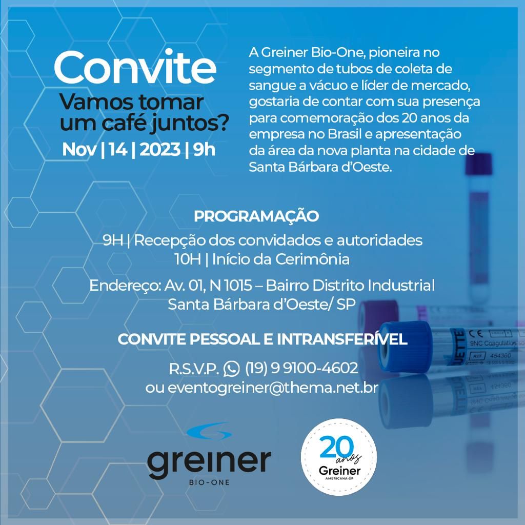 “Esta ampliação será mais um marco para a Greiner Bio-One, que desde 2003, instalou sua primeira fábrica em Americana, interior de São Paulo, e vêm apresentando crescentes resultados positivos no mercado brasileiro”. Quando a nova planta estiver em pleno funcionamento teremos mais de 400 colaboradores nas 02 unidades, além de terceiros, impulsionando a economia local, destaca Haroldo Graci, Diretor Geral Latam.
