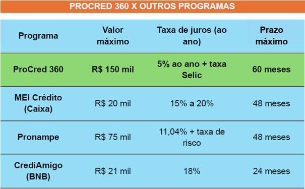 Criado para democratizar o acesso ao crédito, o ProCred 360 é uma linha de financiamento destinada ao público MEI e Microempresas (ME) com faturamento bruto anual igual ou inferior a R$ 360 mil.