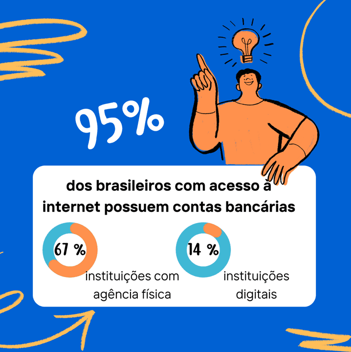 Noventa e cinco por cento dos brasileiros com acesso à internet possuem contas bancárias de acordo com uma pesquisa