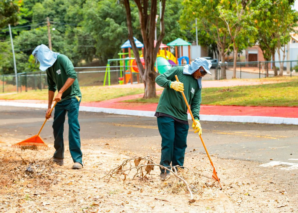 Máquinas e equipes de trabalho executam os arremates finais da obra. O projeto executado dispõe de novo playground, calçamento, paisagismo e iluminação em LED.