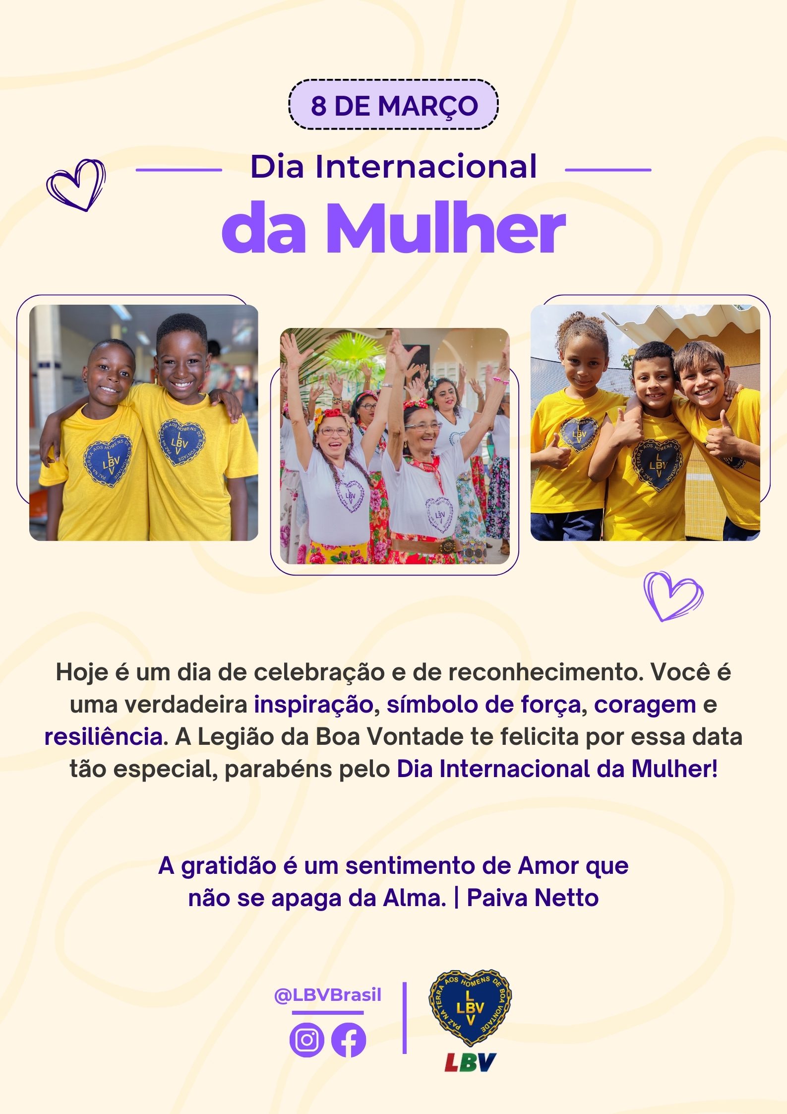 Acompanhe o perfil @LBVBrasil nas Redes Sociais e acompanhe o trabalho de proteção à mulher.