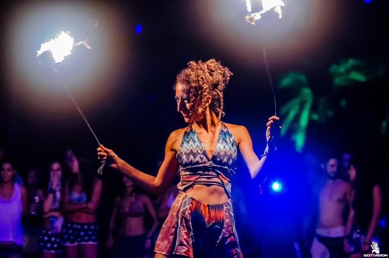 Bárbara Francesquine é artista circense e dançarina, com especialidade em BAMBOLÊS, que viaja o mundo apresentando espetáculos, performances e ministrando workshops.