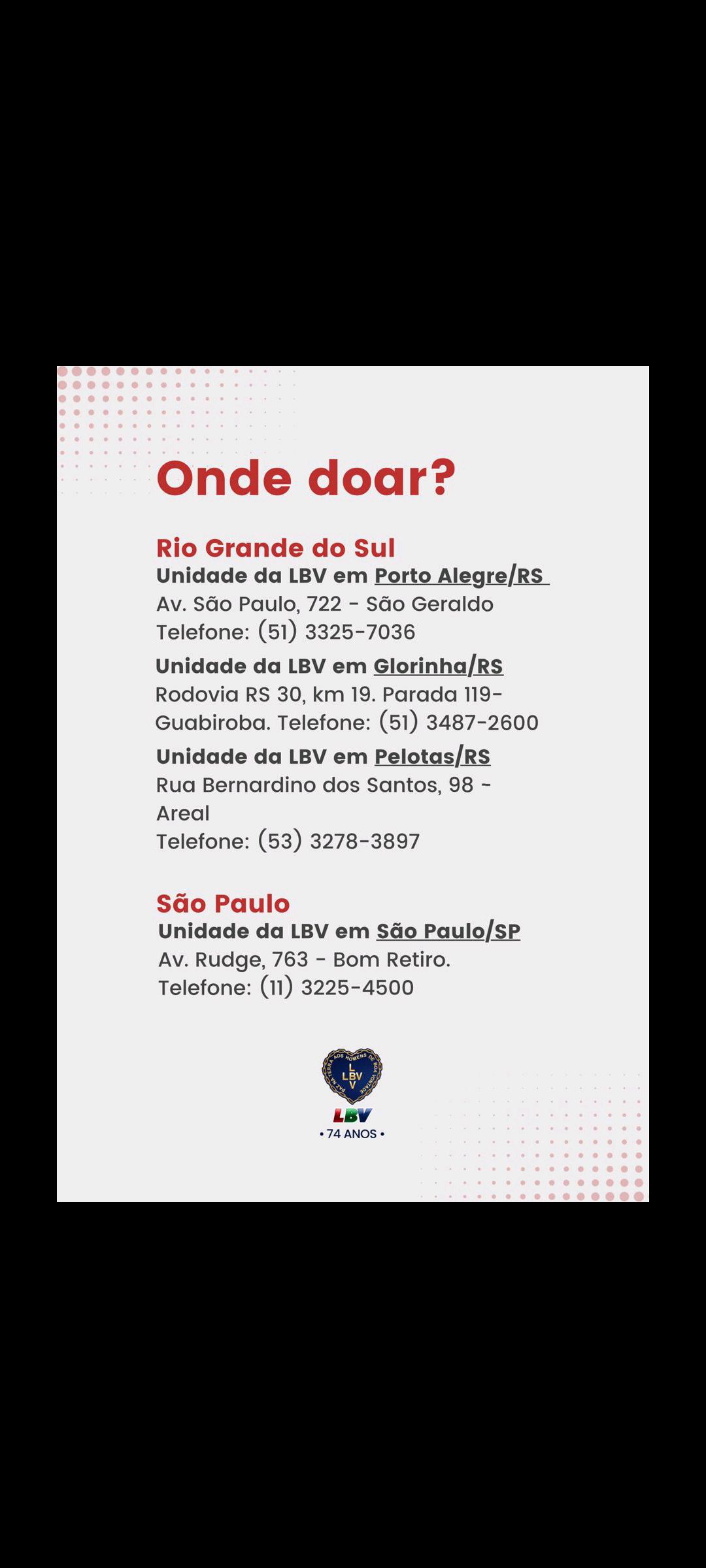 Acompanhe a entrega dos donativos acessando @lbvbrasil no Facebook e no Instagram.