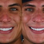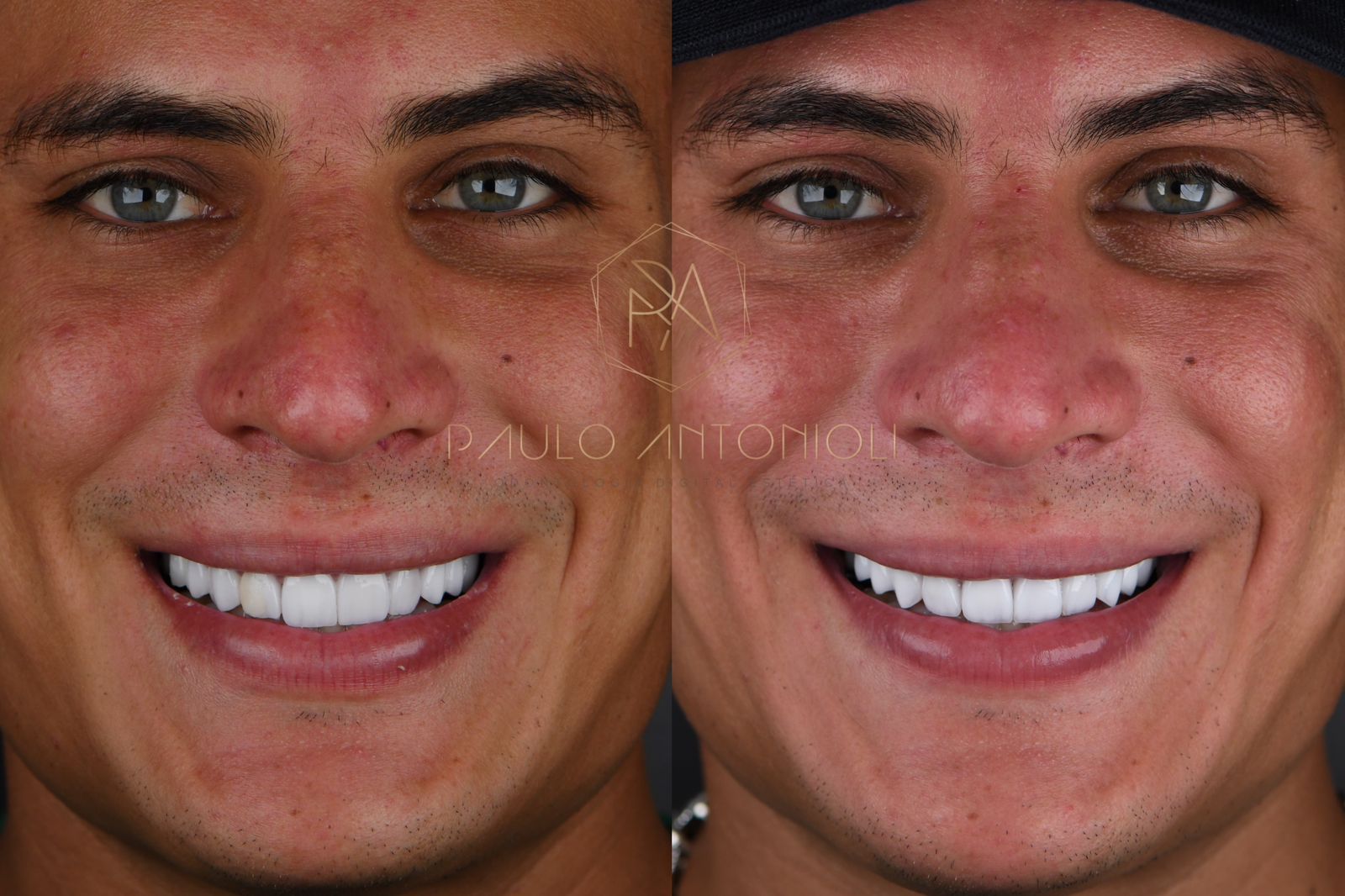 “Fizemos a retirada das lentes que o Thiago estava, para tratar o sangramento na gengiva, por motivos de excesso de material que estava causando esse desconforto e quebras nas lentes“, conta o Dr. Paulo, especialista em lentes de contato dental.